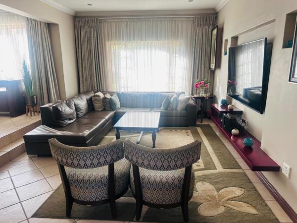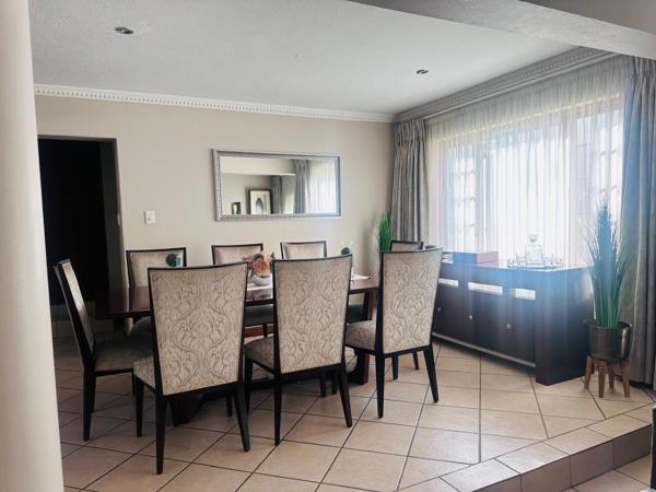 As you walk in this beautiful well maintained home that offers a double garage, with a guest toilet downstairs, has a beautiful kitchen to cook those hearty family meals, kitchen has a gas stove and oven this kitchen leads to a scullery with space for a dish washer, tumble dryer and a washing machine with double sink. Spacious dining area followed by a lounge that leads to a second lounge.1 full bedroom downstairs with a wardrobe that leads into a bidet toilet . Upstairs there is the main bedroom with a juliet balcony that has a walk in closet and ensuite bathroom allows for long soaking nights followed by 2 generous bedrooms with spacious built in cupboards, the 2 generous bedroom share a full size bathroom that has a shower, bath tub, toilet and basin. Peacefull estate that offers lots of tranquillity inside and outside. This estate definitely offers a quality lifestyle. It is close to a lot of amenities such as Broadacres complesx, Monte Casino,Lanseria airport, private schools, shopping centres with a variety of entertainment options around, life hospital. Dont waste anytime just call or whatsapp for viewing to secure this lovely home.