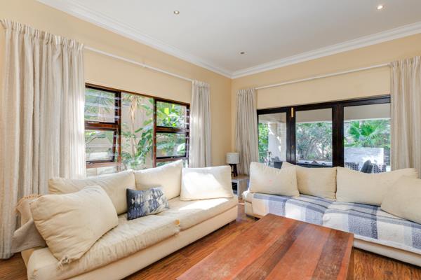 The home boasts four bathrooms, a guest toilet, and three comfortably sized living rooms, including a cozy winter lounge with a fireplace and bar, ideal for entertaining.