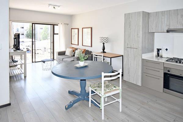 The apartment features an open-plan layout with a modern kitchen fitted with quality finishes and ample cupboard space, seamlessly flowing into the lounge and dining area. The living space extends onto a private balconyperfect for enjoying your morning coffee or a bit of fresh air.