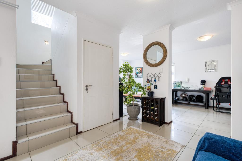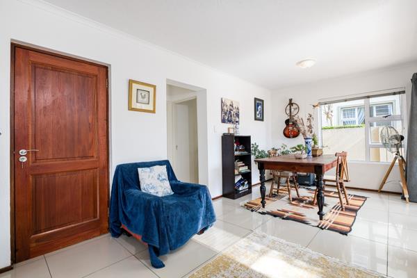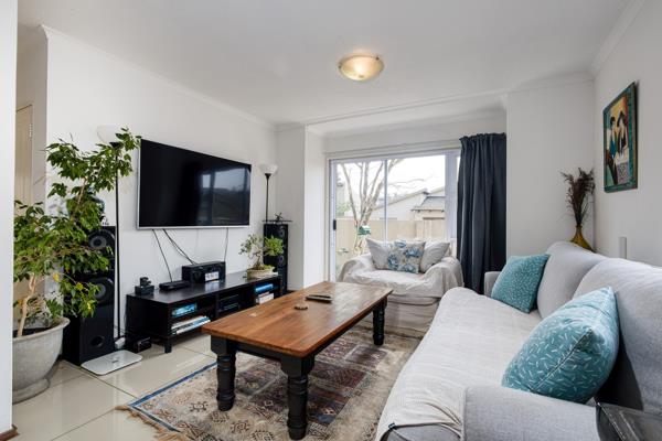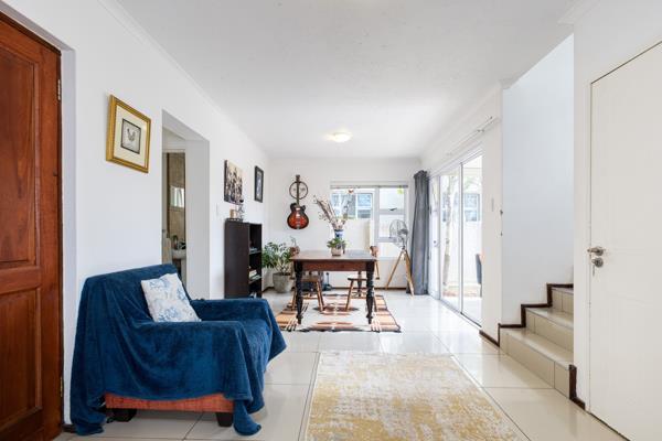 A covered patio leads out from the dining area into a charming, low-maintenance garden ideal for weekend braais or morning coffee outdoors. A guest toilet completes the downstairs layout.