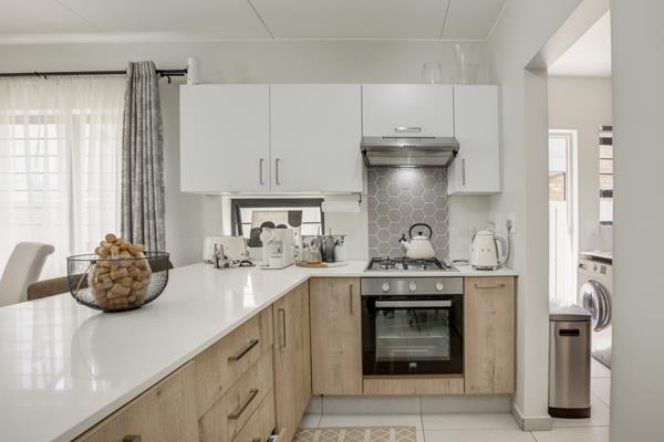 Welcome to this modern and stylish home located in a secure complex close to all amenities. Upstairs, you''ll find three spacious bedrooms, including a main ensuite, a full family bathroom, a linen cupboard, and a convenient study nookperfect for work or study from home. Downstairs features a guest loo and an open plan living area comprising a lounge, dining space, and a chef''s kitchen with Caesarstone countertops, a pull-out adapter, gas stove, and a separate scullery with space for a double fridge and two appliances. An interleading door connects the kitchen to the double garage for added convenience.