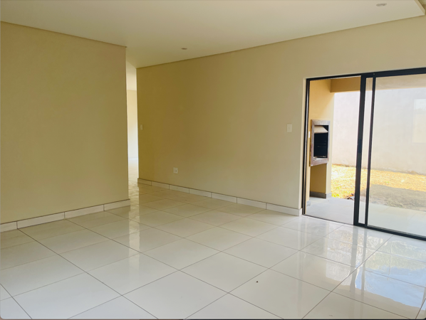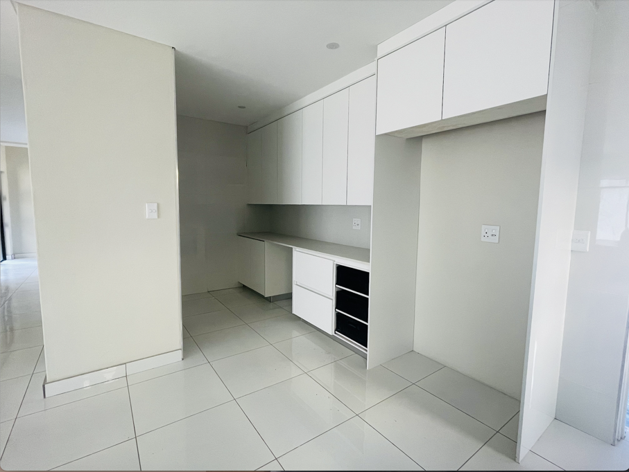 The heart of the home features an open-plan kitchen with ample storage and counter space, paired with a dedicated dining area that opens out to the garden, offering indoor-outdoor living at its best.