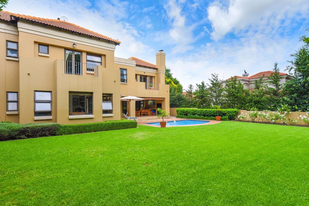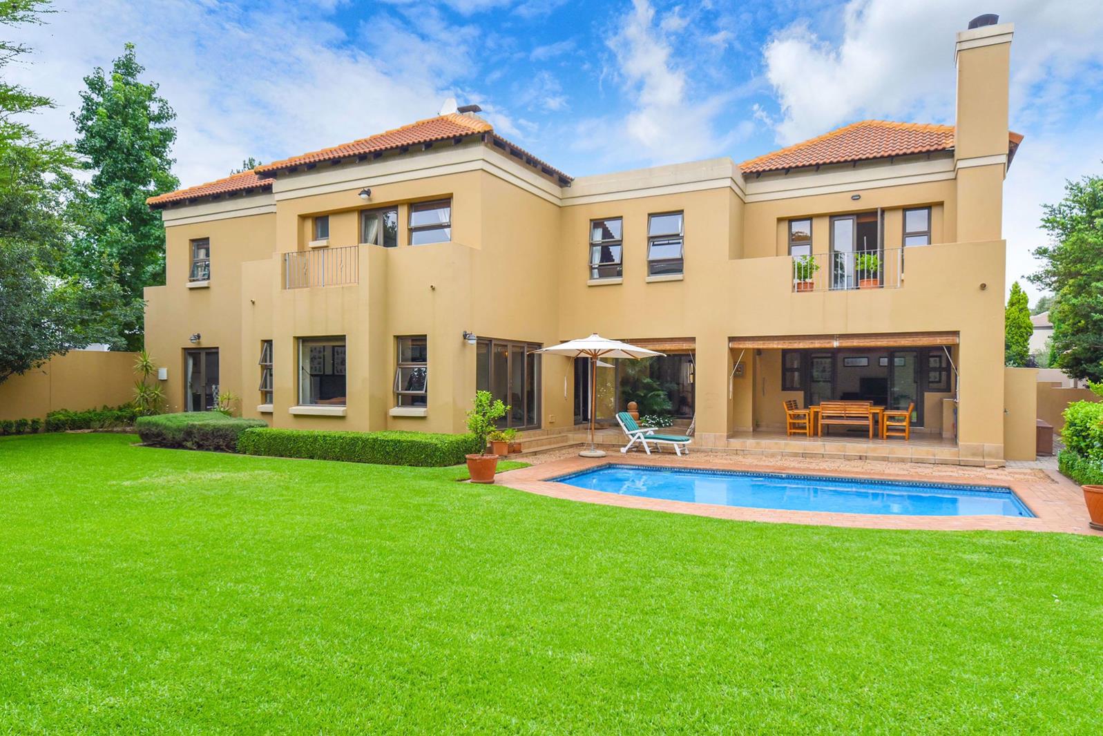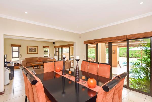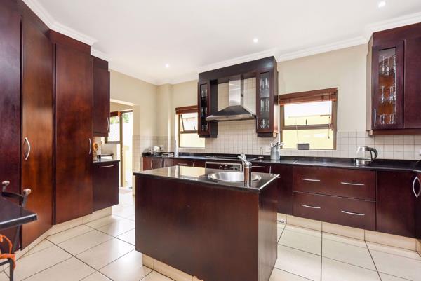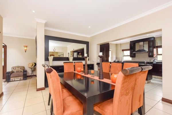 All The Elements Of a Perfect Home. This upmarket light and bright family home is set in an exclusive upmarket estate and has an inviting double volume entrance that leads you to three receptions with aluminium sliding doors that open to a large pet friendly established garden, large covered entertainers patio with a built in gas braai, and sparkling swimming pool.