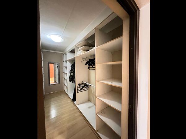 The outdoor area is perfect for entertaining, with a built-in braai, swimming pool, and ample space for alfresco dining. The main bedroom boasts a dresser room, while the kitchen is equipped with granite tops, space for 2 appliances, and double sinks. The property also features solar panels, irrigation, and wooden flooring in the bedrooms.