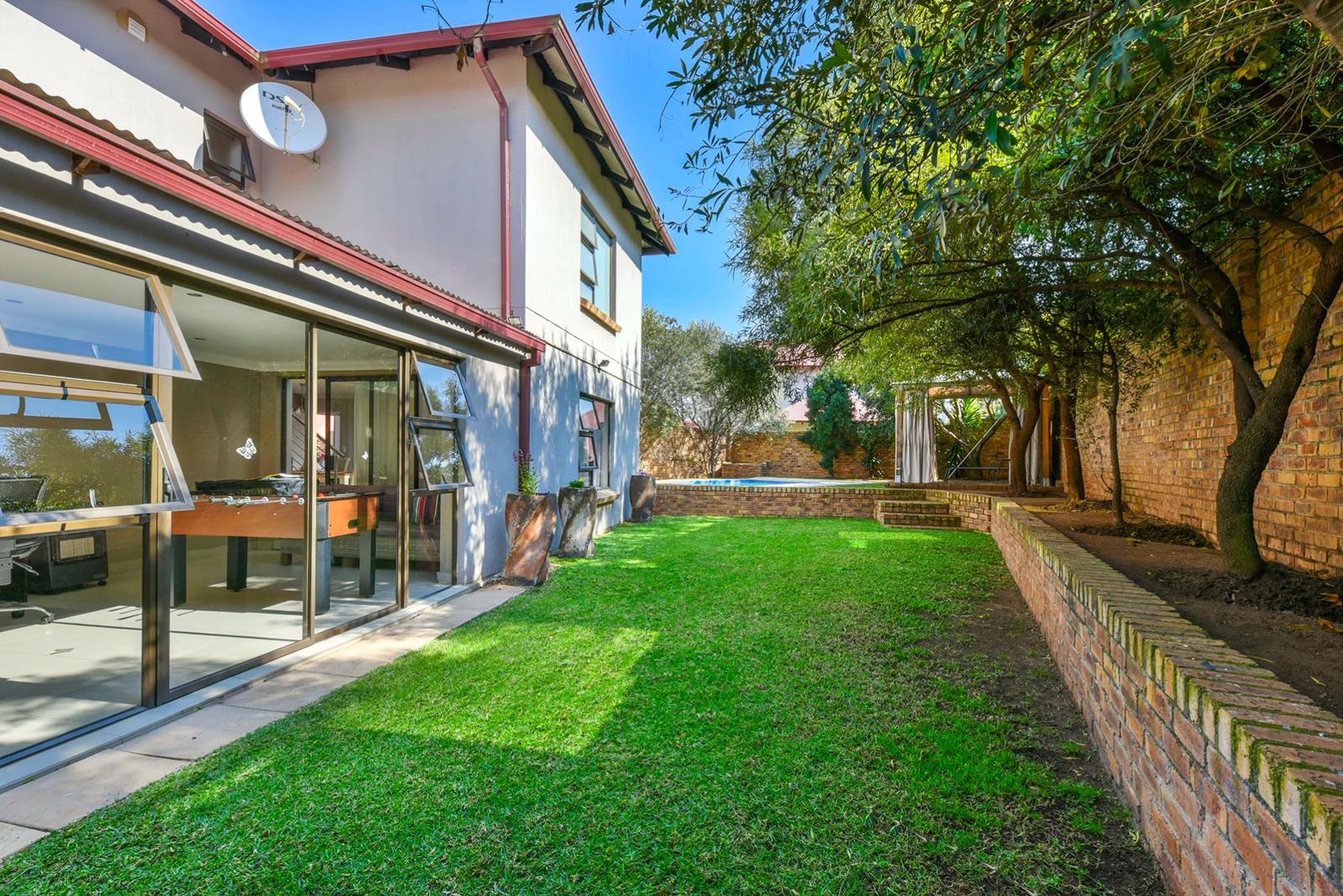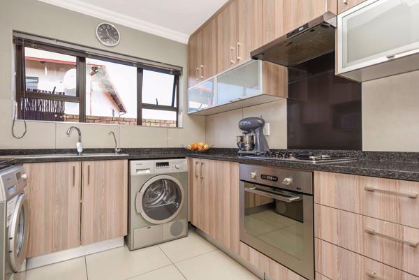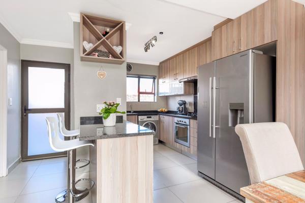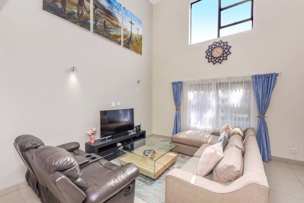 Up stairs there are four good sized bedrooms, all with Bics and laminate floors, main has plenty of cupboards and a full en-suite .The 2nd bathroom is neat with a bath and single vanity . There is a large garden and a covered second patio area next to a good sized pool with a pool net for safety . Double auto garage . This home has solar back up for times of loadshedding. The home has been recently painted which is a great addition .