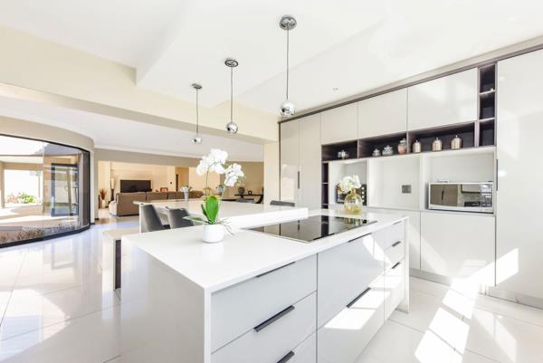 The heart of the home is the expansive open-plan lounge and dining area, which connects to a stunning large family eat in kitchen complete with centre island , Caesar stone counter tops and plenty of storage . A separate scullery enhances the kitchen''s functionality, providing additional storage and organization space.