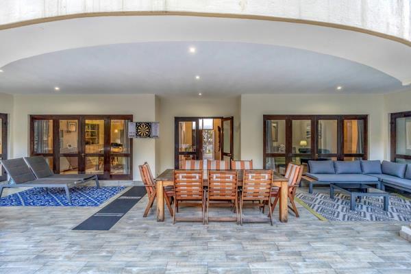 Entertainers Dream All reception rooms open onto an oversized patio overlooking a manicured garden and a shimmering poola perfect backdrop for sunset gatherings or weekend lounging.
