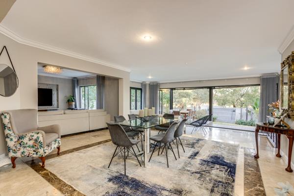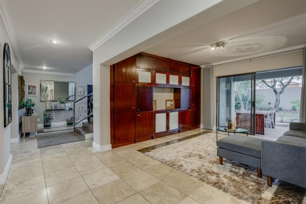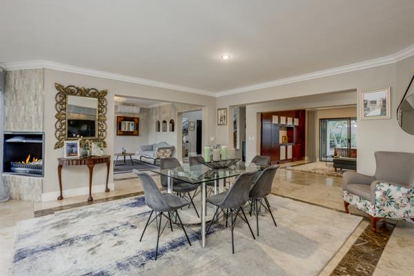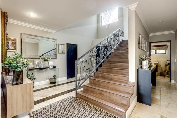 On the ground floor, four versatile reception rooms including three stylish lounges and a dining area create the perfect setting for entertaining or family gatherings, all enhanced by the inviting glow of a central gas fireplace. At the heart of the home lies the gourmet kitchen, boasting Caesarstone countertops, a centre island, premium Smeg gas hob with electric oven, and a built-in coffee machine. A separate scullery and laundry ensure seamless convenience for day-to-day living.
