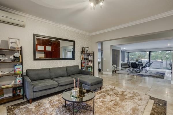 Outdoor living is designed for year-round enjoyment: a covered patio for alfresco dining, sparkling swimming pool, and a second patio overlooking the tranquil back garden. A self-contained flatlet with bathroom adds further versatility.