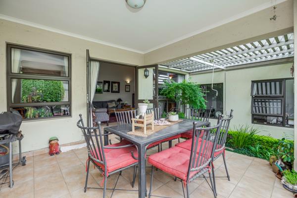 The covered patio leads out from the lounge and overlooks a private, pet-friendly garden an ideal space to relax.