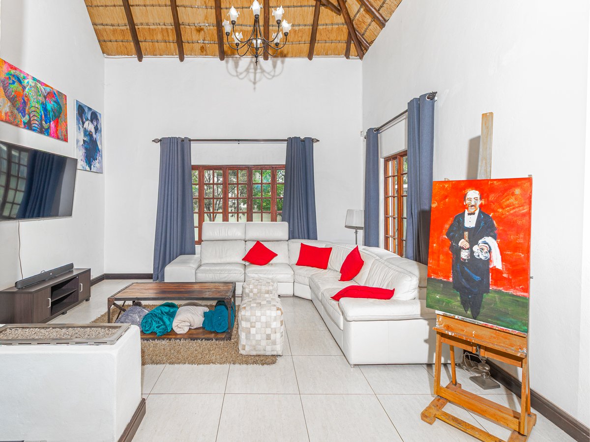 Entertainer''s Dream: The impeccable open-plan lounge and dining room flow seamlessly, centered around a cozy gas fireplace. This area extends to an over-sized, covered deck with a built-in braai (barbecue), offering the perfect space for year-round entertaining.