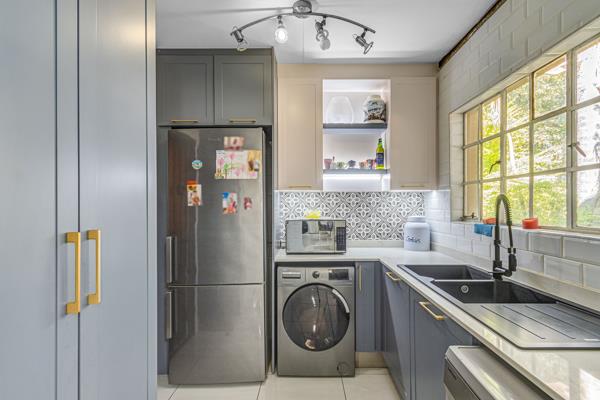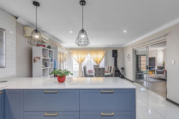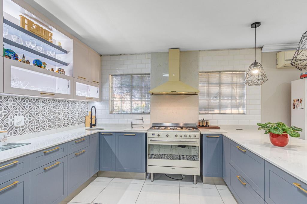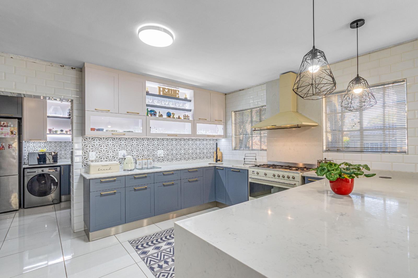 The gourmet kitchen is a true highlight, boasting elegant Caesarstone countertops, a breakfast bar, ample pantry space, and a gas stove. There''s dedicated room for a double-door fridge, and the separate scullery comfortably accommodates three appliances.