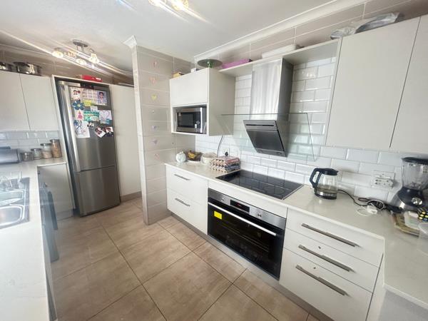 This spacious duplex offers a perfect blend of comfort and functionality. The downstairs area boasts a modern open-plan design, featuring a large kitchen with ample cupboard space, flowing seamlessly into the dining room and lounge. A guest toilet is conveniently located on this level.