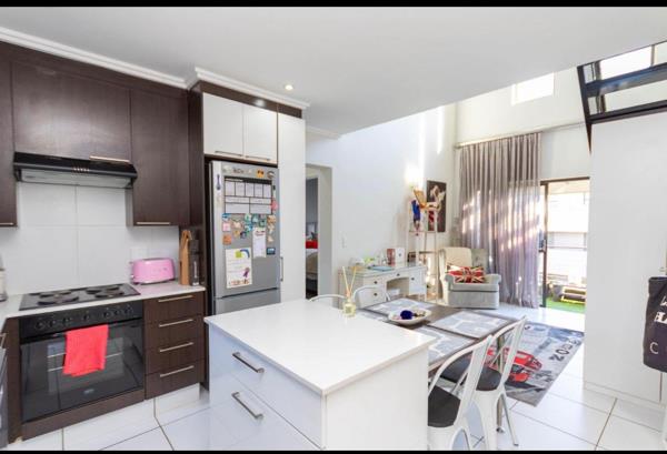 The heart of the home is the modern kitchen, featuring sleek finishes, ample cupboard space, and a striking centre island complete with a built-in breakfast nook, ideal for casual dining and entertaining.