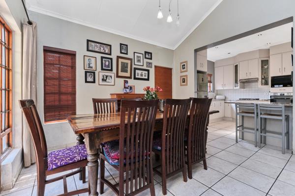 The open-plan dining and living areas flow seamlessly onto a covered veranda, an inviting space for year-round entertaining. From here, enjoy calming views of the sparkling pool and lush, manicured garden, creating the perfect backdrop for outdoor gatherings or peaceful moments of relaxation.