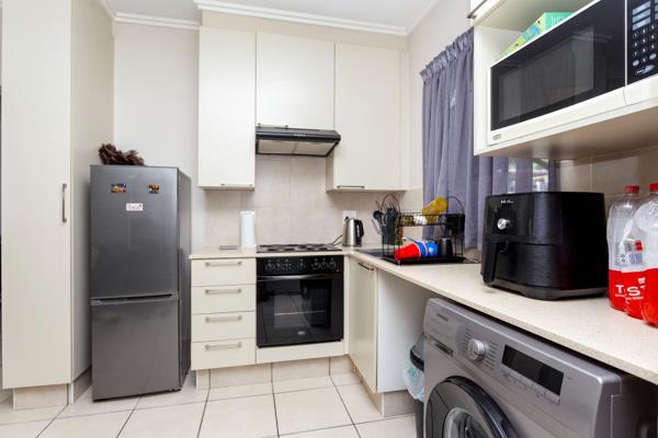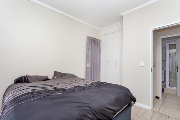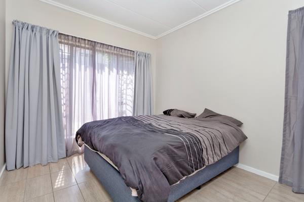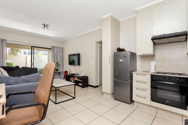 This stylish one-bedroom garden apartment is set in the popular Cedar Lofts estate. The modern kitchen boasts Caesarstone countertops, space for one undercounter appliance, and a single-door fridge, flowing into the open-plan tiled lounge. Glass doors lead out to a covered patio and private garden, with the added advantage of being a bright corner unit. The sunny bedroom offers built-in cupboards and contemporary tiling, complemented by a full bathroom. Pet-friendly for one cat or a small dog, the apartment is ideal for comfortable, easy living. There is one covered carport located close to the unit for easy access, with plenty of secure visitor parking close by. Unit is fibre ready for your convenience.