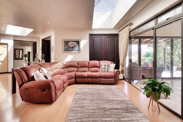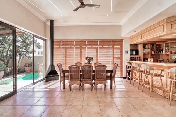 Discover a sun-filled family residence on a corner stand that offers comfort, warmth, and peace of mind. From the welcoming entrance to the reception areas and large kitchen with a separate scullery and walk-in pantry, the flow is effortless, making the home ideal for relaxation and entertaining. Skylights throughout allow for an abundance of light. The covered patio with a cozy fireplace seamlessly transitions to a spacious indoor/outdoor patio which opens with stacking doors onto a sunny garden with lovely sunset views and an inviting pool. Whether you are enjoying the warmth of the fireplace in winter or hosting a summer barbecue with the built-in braai, this space is perfect for year-round entertaining.