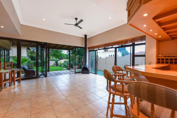A separate family room provides a versatile space for relaxation or entertainment. The thoughtfully designed kitchen is a dream for any home chef, boasting abundant cupboard space, a gas hob, double eye-level ovens, a generous walk-in pantry, and room for a double fridge. The adjoining scullery offers ample functionality, accommodating three under-counter appliances with additional space for a second double fridge. A delightful breakfast nook extends from the kitchen, leading to a charming courtyard that enhances the home''s natural flow and connection to the outdoors.