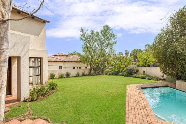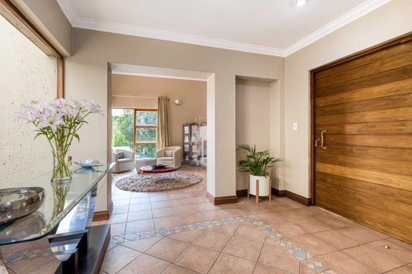 This spacious, charming single storey home is located in the highly sought-after Dainfern Ridge Estate. This home is perfect for family-living, offering comfort and easy flow throughout. Upon entry you are welcomed into the warm sun-filled entrance hall that overlooks a lovely lush atrium. The family room is open-plan to the formal lounge, sharing a double sided gas fireplace that is ideal for the cooler winter months, these lovely reception rooms all overlook the large private garden and swimming pool.