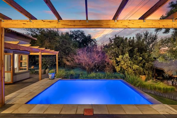 Step into your very own escape an entertainers paradise featuring a beautiful rim-flow pool, expansive decked walkways, and a seamless connection between indoor and outdoor living. The tranquil lapa area, surrounded by lush greenery, evokes the feel of a private bush retreat, making every sunset feel like a getaway.