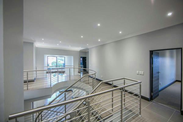 The home features a study and a conveniently located en-suite bedroom on the ground floor. Upstairs, features a generous pajama lounge that opens to an expansive balcony and four beautifully designed bedrooms with an incredible master bedroom, featuring a cozy fireplace, a walk-in wardrobe, and a spectacular fully-equipped en-suite bathroom boasting an indoor and outdoor shower. State-of-the-art fixtures and fittings adorn every corner of the home.