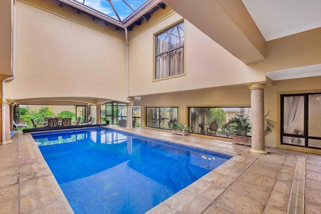 An impressive home for the entertainer! A light airy entrance with double volume and a stunning chandelier sets the tone. Modern finishes throughout with a feature heated pool central to all the living spaces. This home features garaging for 4-5 cars and a full solar system.