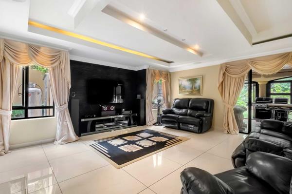 This elegant home boasts large living rooms with sliding doors onto the garden. A gorgeous regal lounge designed to host a large party of friends and family. The hub of the home is the ultra modern kitchen open to the dining room and family room, complete with a built-in fireplace. The bar area is ideal for entertaining, as is the indoor/outdoor patio area. There is a guest cloakroom.