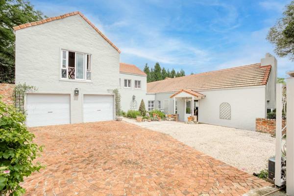 Nestled in the trees, on a beautiful corner stand in this pristine, tranquil Estate, is a gorgeous modern country home. This home has so much curb appeal and will capture your heart! The pretty entrance opens with a picture window view onto the garden. Stunning Oak flooring throughout the living areas, adds to the charm. There is a lovely lounge on the right, ideal for intimate entertaining and especially cozy with the fireplace for winter. The large double volume family room has a central fireplace that warms the entire living area. The dining room is open to the family room and kitchen and there is a lovely sun-room to add to the ambience of this beautiful home. There is a 5KVA inverter and 4 batteries.