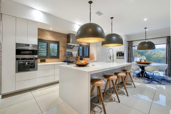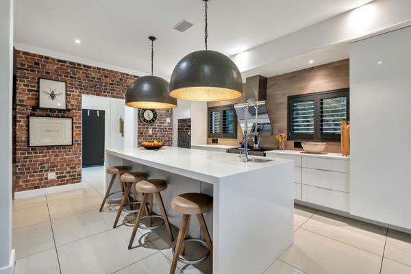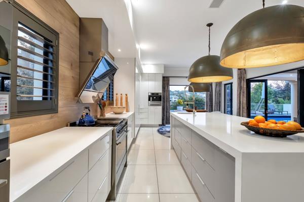 Offering approximately 1,250m of sophisticated living space, the thoughtfully designed floorplan showcases four elegant reception areas including a fitted bar area, each seamlessly flowing onto an entertainers dream patio. This impressive outdoor space features a built-in gas braai, pizza oven, a sweeping lookout deck and private solar-heated pool, ideal for grand gatherings or intimate family moments.