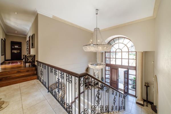 The lower level is the ultimate entertainment oasis. Designed for indulgence and connection, it boasts an indoor heated pool and Jacuzzi, a custom-built bar, a TV lounge with a gas fireplace, a feature fish tank, and even a dance pole. A walk-in wine cellar with temperature control, a spa-style bathroom, and ambient lounge spaces complete the indoor luxury. Outside, a picturesque landscape surrounds the home, including riverfront views, walking paths, an open-air boma, and a fully equipped childrens play area with AstroTurf, a treehouse, and a Wendy house. Additional highlights include a quadruple garage, visitor parking, a full CCTV system with triple alarm protection, and an eco-conscious backup system with 20 solar panels, a 12 KVA inverter, water tanks, and solar geysers.