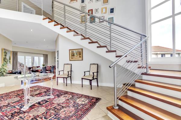 A gorgeous renovated home with a beautiful double volume entrance hall with feature staircase and an abundance of natural light welcomes you into a beautiful classic contemporary family home with luxury finishes throughout. Featuring generous and expansive living and entertainment areas that flow effortlessly together with an inviting and relaxed ambiance. Entertainers patio overlooks the designer pool and manicured garden. Also on offer is a custom designed gourmet kitchen with separate scullery. 5 generous en suite bedrooms with beautifully finished bathrooms including a luxurious master suite with private dressing room that opens onto a large, covered balcony with engaging panoramic views. All bedrooms have beautiful laminated flooring. Double staff accommodation, 3 automated garages and ample paved parking. Luxurious extras include a fireplace, airconditioning, solar heated pool, American shutters in the main bedroom, backup power and automated irrigation system.