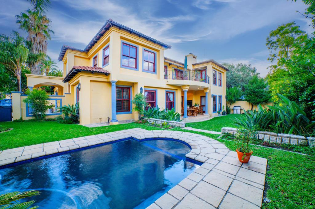 The outdoor spaces are just as impressive. A covered patio with a built-in braai overlooks the expansive garden, which is both stunning and meticulously maintained. The garden features a sparkling pool with a tranquil water feature, an automated sprinkler system, and a dedicated gardeners gate for convenience. Whether youre hosting a barbecue or enjoying quiet family time by the pool, this outdoor oasis is perfect for every occasion.
