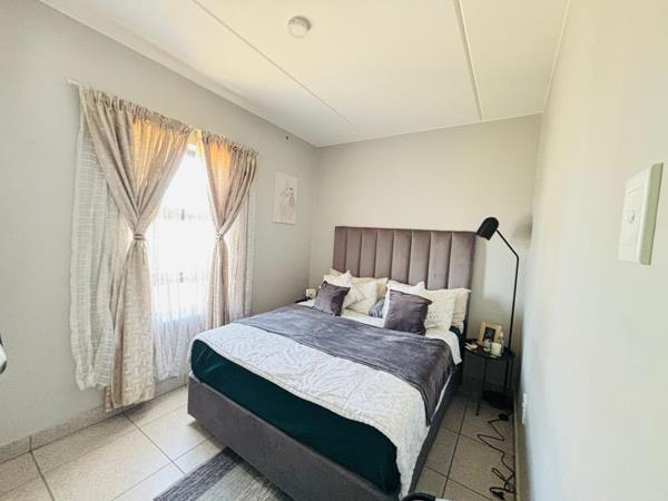 This cute and cozy apartment in a secure complex comes with with a neat kitchen that has built in cupboards and space for a washing machine. It flows nicely to the living space. There are 2 spacious bedrooms that have built in cupbords and a bathroom.