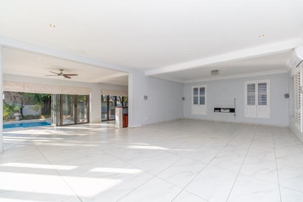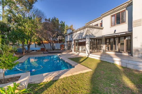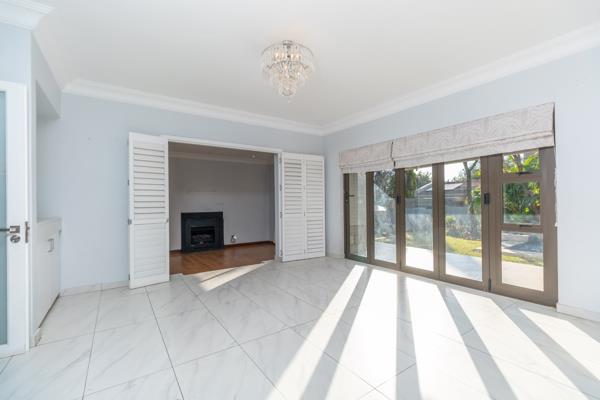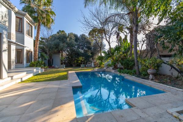 This character-filled north-facing family home is located in a prestigious village and offers spacious open plan living and entertainment rooms all bathed in sunlight. There is a formal lounge with wooden flooring and a fireplace, a TV lounge and open plan kitchen with separate scullery. The living area opens up to a large bar with stacking doors that lead to a spacious garden, complete with a swimming pool and a fire pit, perfect for entertaining. There is a downstairs guest bedroom with an en-suite bathroom, ensuring comfort and privacy for visitors and four generously sized bedrooms upstairs. Two of these share a full bathroom, while the other two are en-suite. The main bedroom boasts a walk-in dressing room, an en-suite bathroom, and a private balcony with stunning views.