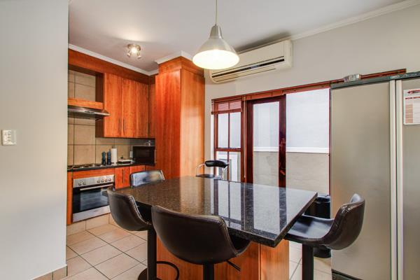 The home offers light-filled, open-plan living spaces that flow effortlessly onto a covered patio with a built-in braai, overlooking the private garden and sparkling pool ideal for relaxed family living and entertaining. The modern kitchen features plenty of cupboard space, a centre island for casual meals, and an easy connection to the lounge and dining area.