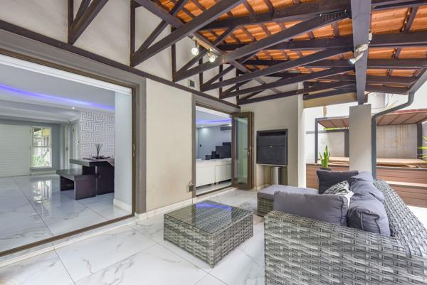 Modern home in prime location. A sleek home for the discerning buyer. Many extra fixtures and fittings lending to modern yet comfortable living. Very spacious open plan kitchen,lounge and dining opening up with stack doors to a large and private covered entertainment area , pool and 12 seater Jacuzzi. Perfect for relaxation or alfresco dining.Upstairs has 3 bedrooms ,Master bedroom with en-suite and walk-in closet , Air conditioning and blinds throughout the home. Smart lighting throughout. Built in invertor system in the double tiled automated garage. This lovely home in a secure guarded estate is in close proximity to Dainfern Square. This property is a rare find in the sought after suburb of Dainfern.