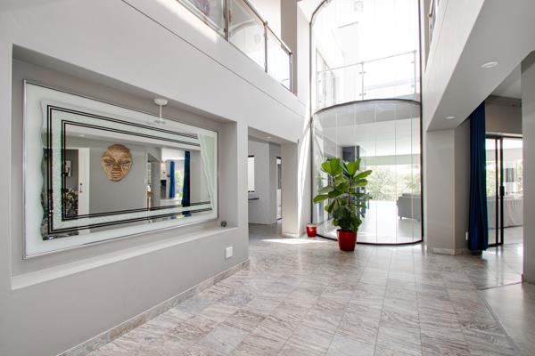 Modern Sophistication Contemporary design with the ultimate in gorgeous panoramic views of the superbly designed Gary Player Golf course. Double Volume custom design glass entrance leads through to Dining / Lounge / Entertainment Bar stunning entertainment aspect to this modern home. This Home features expansive light and glass throughout with all receptions leading out to an Undercover patio. Presenting a fabulous entertainers home, dream Mod Gourmet Kitchen with top of the range appliances for the ultimate chefs kitchen /Centre island / breakfast bar with a separate scullery. Double Volume custom design glass entrance leads through to Dining / Lounge / Entertainment Bar and stunning entertainment aspect to this modern home. Well landscaped garden and sparkling pool ideal for family and friend gatherings. This four bedroom family home with Study offers a perfect blend of style, luxury and comfort with expansive bathrooms they cater for every need. Additional Triple Garage, Office /work from home /Staff accommodation with kitchen / flatlet. A must to view by appointment.