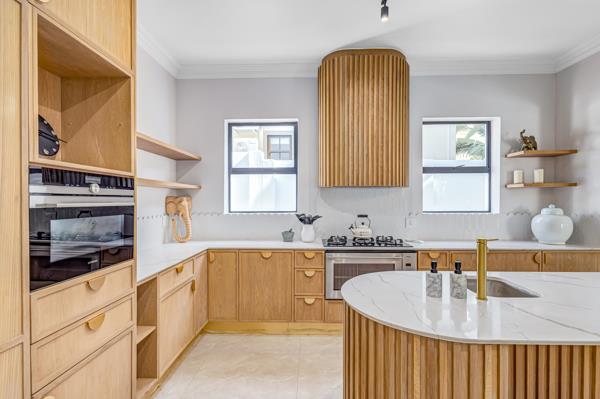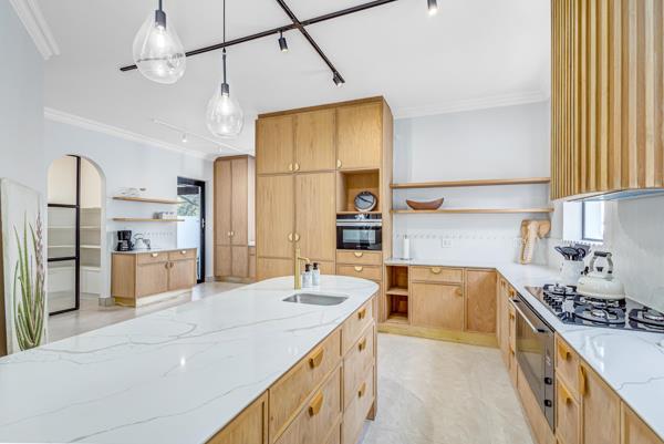 Soaring ceilings amplify the sense of space and grandeur, while the open-plan living and dining areas create a seamless, versatile layout perfect for both everyday living and sophisticated entertaining.