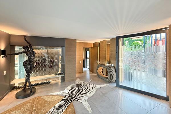 Living and entertaining areas are open-plan and bathed in natural light, thanks to oversized, higher-than-standard sliding doors that frame the stunning views. The seamless flow extends to an elegant fitted bar, a wine cellar, and an entertainment patio with an automated, weather-sensitive pergola. Enjoy outdoor living with a heated swimming pool and an automated, concealed outdoor TV system perfect for entertaining year-round.