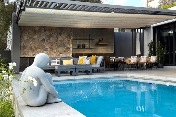 Introducing a Luxury Designer Home with Spectacular Views in Dainfern Golf Estate. Joint Mandate. Step into a world of refined elegance with this luxury, fully renovated designer residence set in the heart of the highly sought-after Dainfern Golf Estate. This exceptional home effortlessly blends contemporary sophistication with timeless quality, offering uninterrupted views of the fairway, river, and lush green landscapes.