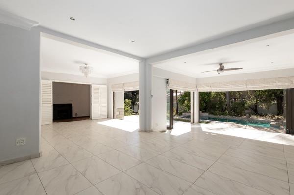 The living areas flow effortlessly to a covered patio, designed as the ultimate entertainment space. Complete with a fitted bar and a built-in wood / coal braai, this area is perfect for year-round gatherings. From here, stacking doors open out to the expansive garden and sparkling pool, creating a seamless indoor-outdoor lifestyle. Whether hosting friends, enjoying family braais, or watching the children play in the garden, this space offers the perfect balance of relaxation and entertainment.