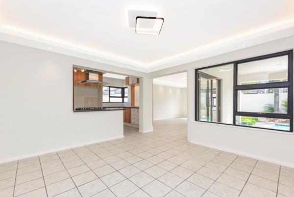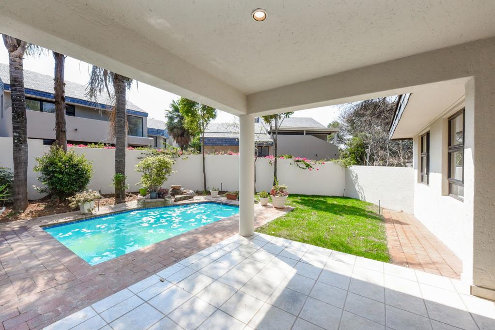 Contemporary 3-Bedroom Cluster in Dainfern Golf Estate. Set within the exclusive Dainfern Golf Estate, this elegant 3-bedroom cluster blends light, space and modern style to create a welcoming family home. A sleek, practical kitchen with gas hob flows effortlessly into open-plan dining and lounge areas, spilling out to a generous private garden. The living spaces extend to a covered patio overlooking a manicured garden and sparkling pool perfect for outdoor entertaining. Upstairs, the main suite features a tastefully refurbished en-suite bathroom and a private balcony. Two additional bedrooms share a modern bathroom, while a versatile PJ lounge provides the ideal work-from-home, study or second lounge space.