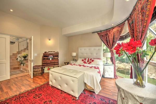 Upstairs, the main bedroom features a walk-in wardrobe, full ensuite, and its own patio with a staircase linking directly to the garden. Two more bedrooms are also located upstairs, each with their own bathrooms, and one includes a private lounge or study that opens onto a balcony.