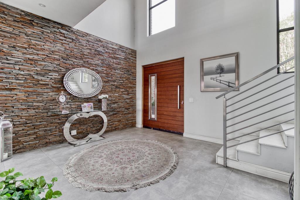 This contemporary residence is ideally situated in the heart of Dainfern, offering breathtaking views of the adjacent river and golf course. As you step into the double-volume space, the stunning scenery unfolds through the expansive glass stacking doors, providing an unobstructed vista of the fairway.