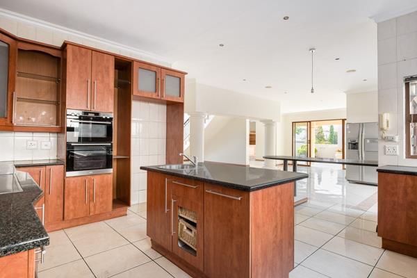 The living areasincluding the lounge, TV room, and dining roomflow well onto a spacious covered patio, perfect for entertaining. From here, take in the views of the garden and pool. A fitted bar adds a sophisticated touch for hosting guests in style.