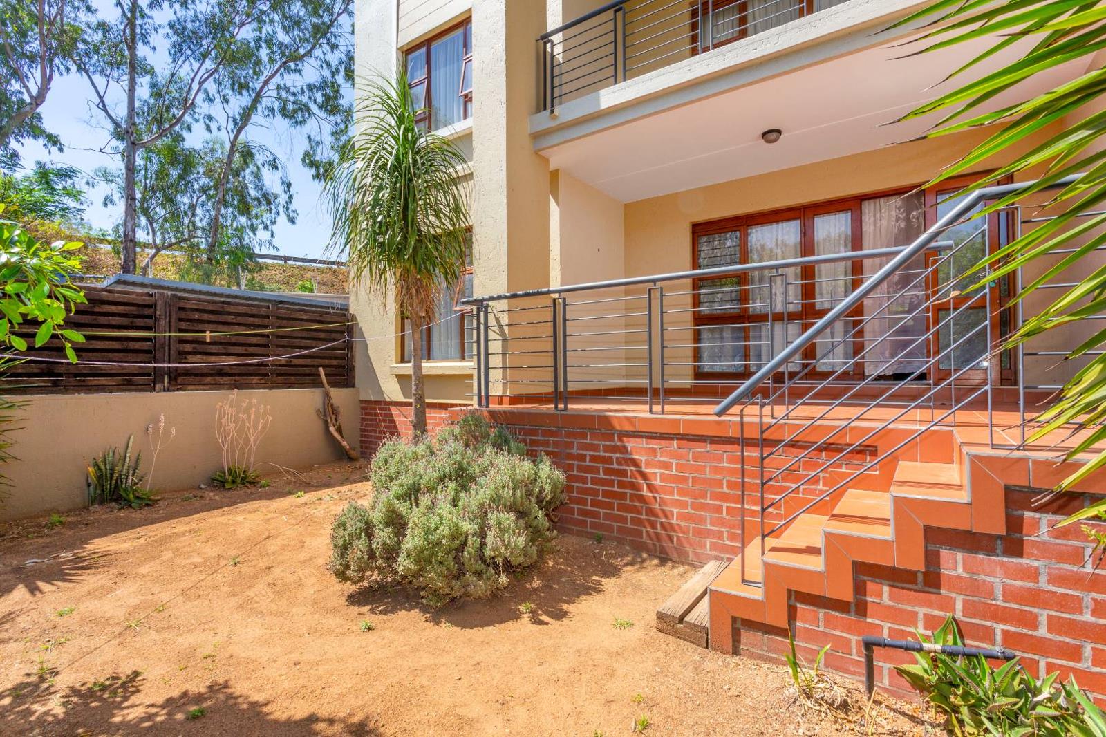 Discover modern living in this inviting 77sqm residence, ideally situated within a secure estate in Douglasdale, Sandton. The property boasts a welcoming exterior with a durable brick base, large windows, and a spacious tiled ground-floor patio, perfect for outdoor relaxation. Residents benefit from a large garden due to the unit being situated on a corner.