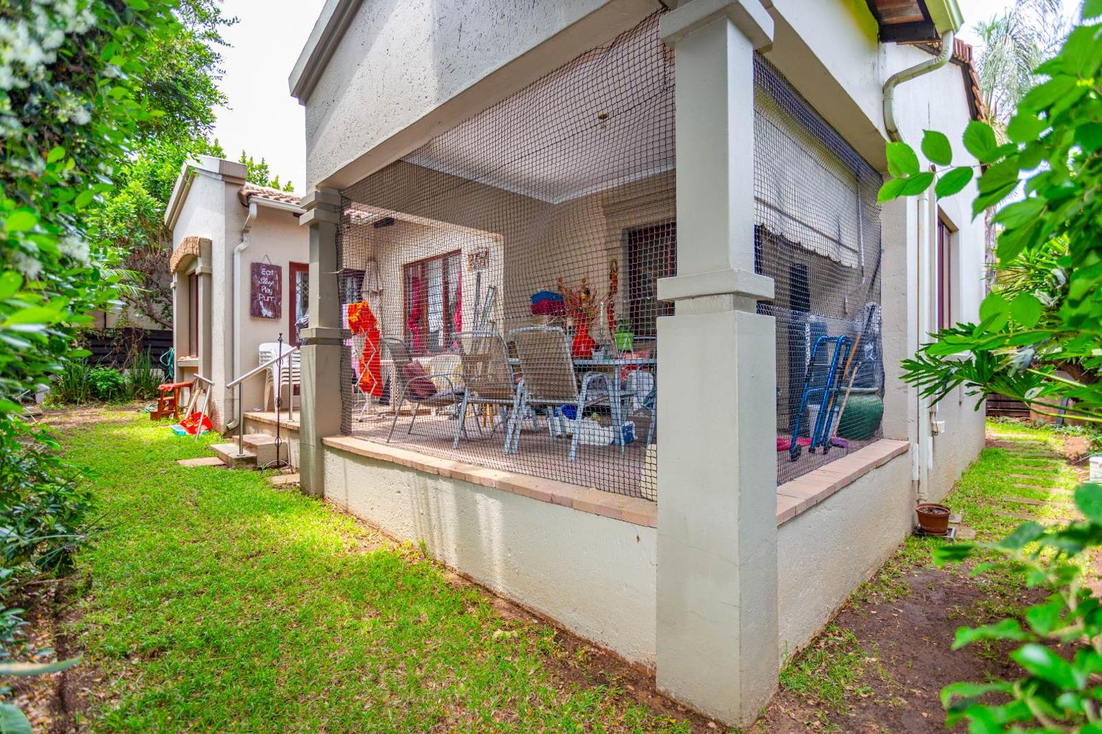 Step outside to a private, covered patio, ideal for outdoor entertaining, overlooking a green garden area. The complex itself offers a communal pool and clubhouse with tennis court and kids play area, fostering a vibrant community lifestyle. With two dedicated parking bays and a pet-friendly policy, this home caters to a variety of needs. Additional features include a Wendy house for extra storage.