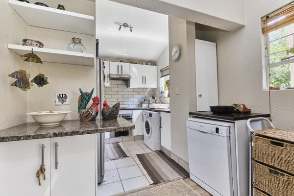 Offering entrance hall with open plan compact kitchen, leading to the lounge, which opens to the covered patio and treed garden. There are 3 bedrooms, 2 revamped bathrooms. PLUS loft/family room/study opening to a balcony. 2 covered parking bays.