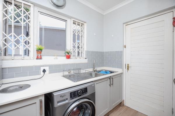The living spaces are bathed in natural light, enhanced by light wood-look flooring throughout and sliding doors leading to the wrap around garden with a pool. The four comfortable bedrooms provide ample accommodation, with the main bedroom benefiting from a private en-suite bathroom. A versatile flatlet offers additional space, a kitchenette, lounge and bathroom... ideal for guests, a home office, or potential rental income.