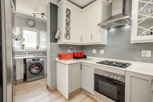 Discover this inviting 4-bedroom, 2-bathroom family home situated within a secure complex in the sought-after Douglasdale. Boasting a generous floor size of 209 sqm excluding a flatlet on a 493 sqm erf, this residence offers a harmonious blend of modern design and practical living. The open-plan layout seamlessly connects the contemporary kitchen, dining area, and lounge. The kitchen is a highlight, featuring stylish two-tone cabinetry, light countertops, a chic grey subway tile backsplash, and integrated appliances including a hob, oven, and extractor fan and a space for Fridge and washing machine.
